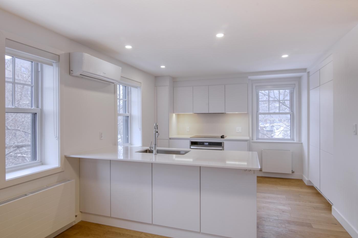 Fully renovated 2 bedroom unit featuring 1,050 SF with modern finishings throughout. Available now, it comes with quality appliances, heating and hot water included. Located in a highly walkable area, close to grocery stores, shops, cafés, several parks (Westmount Park, DorchesterClarke Park), and just minutes from public transit and Atwater Metro for quick access downtown.