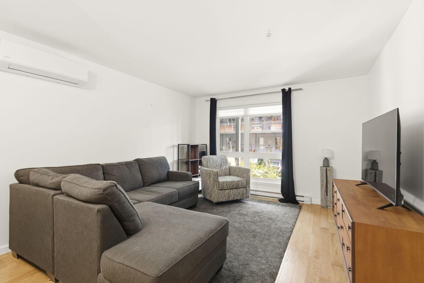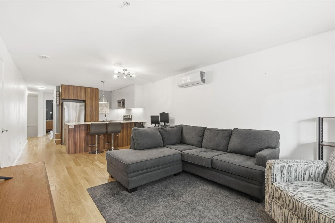 Modern condo built in 2021, featuring an open-concept layout and a private entrance. Perfect for a first-time buyer! The primary bedroom, with its large windows, enjoys exceptional natural light. Stylish kitchen with quartz countertop and access to a private balcony. Located in a rapidly developing area, close to downtown, Notre-Dame Street, the Jacques-Cartier Bridge, Bixi station, and the bike path.